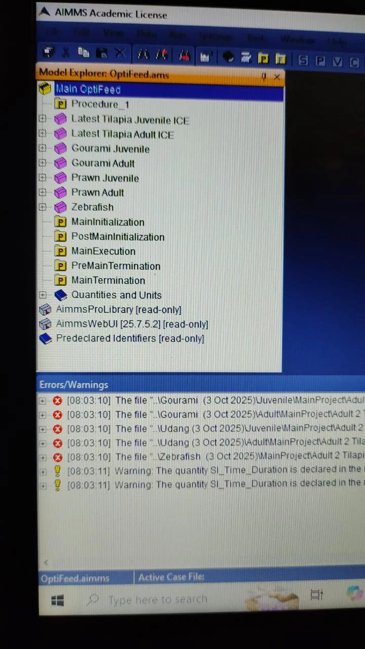 Hi, may i know how to tackle this problem? When working with multiple AIMMS modules in one project, is it possible to organize them within a single AIMMS file by creating separate folders for each project and its corresponding data? I have tried this approach (as shown in the screenshots), but when I run them individually, I am unable to obtain the expected results. Can you help me check if I'm doing this correctly?