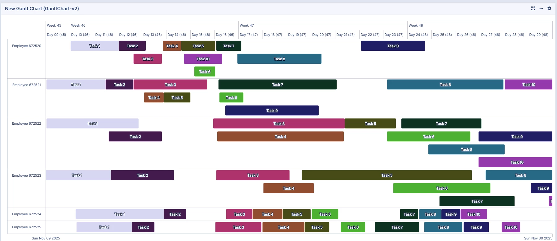 We’re excited to announce that AIMMS WebUI 25.8 introduces a completely overhauled Gantt Chart widget type (GanttChart V2). This new widget type is a major upgrade of the existing Gantt chart widget, offering a more modern, flexible, and intuitive way to visualize time-based activities in your applications.