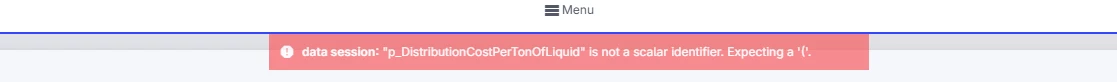 I checked everywhere that p_DistributionCostPerTonOfLiquid has been used and there is no place using it without its indices inside a parenthesis. I even checked the parameters having that parameter in their definition and index domain, and still couldn’t find a case where they have been used without indices.